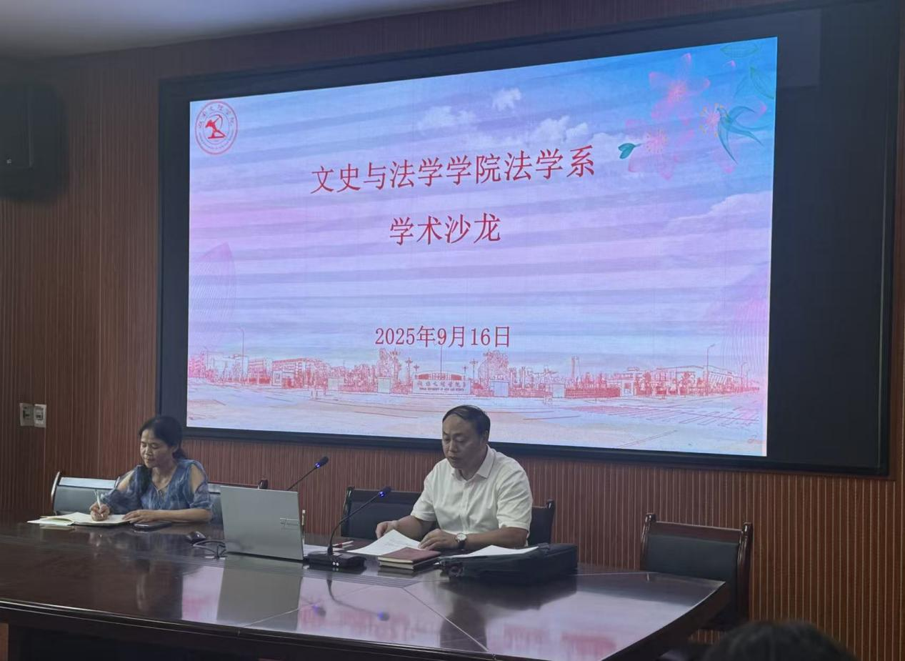 (通讯员 付姣珑)2025 年9 月16日,法学系在学院会议室举办学术沙龙。沙龙由学院党委书记王翀主持,教师骨干齐聚一堂,围绕学术活动规划、地方法治建设协同创新及知识产权前沿话题展开深入交流。