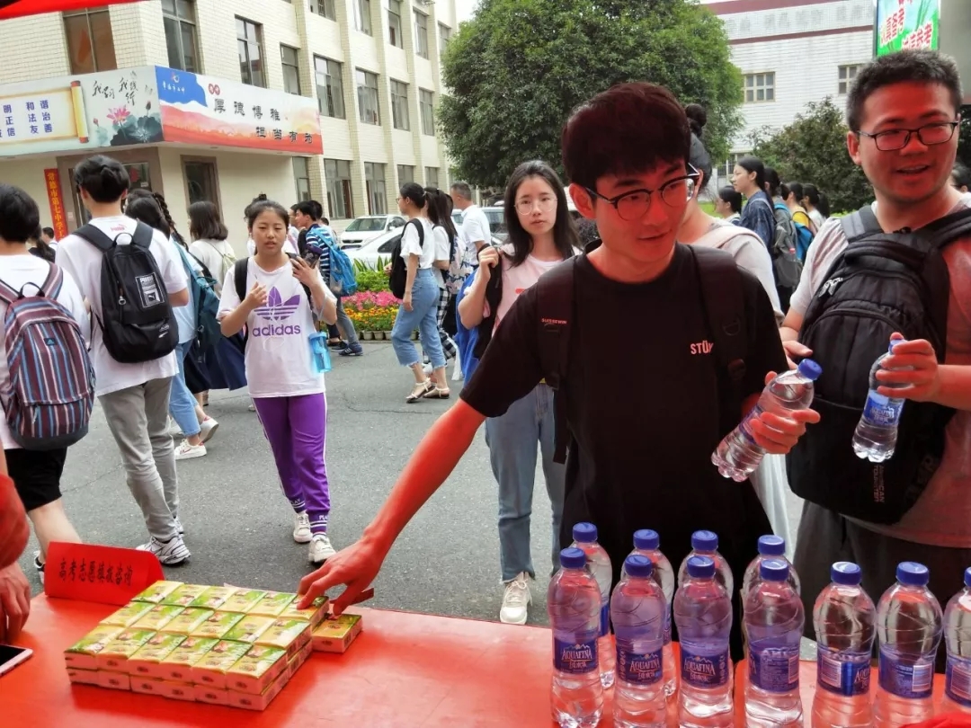 (考生们接受着志愿站点的服务)