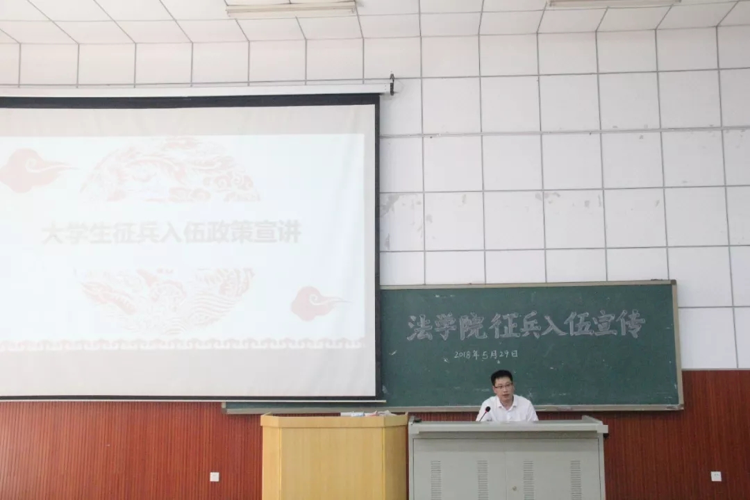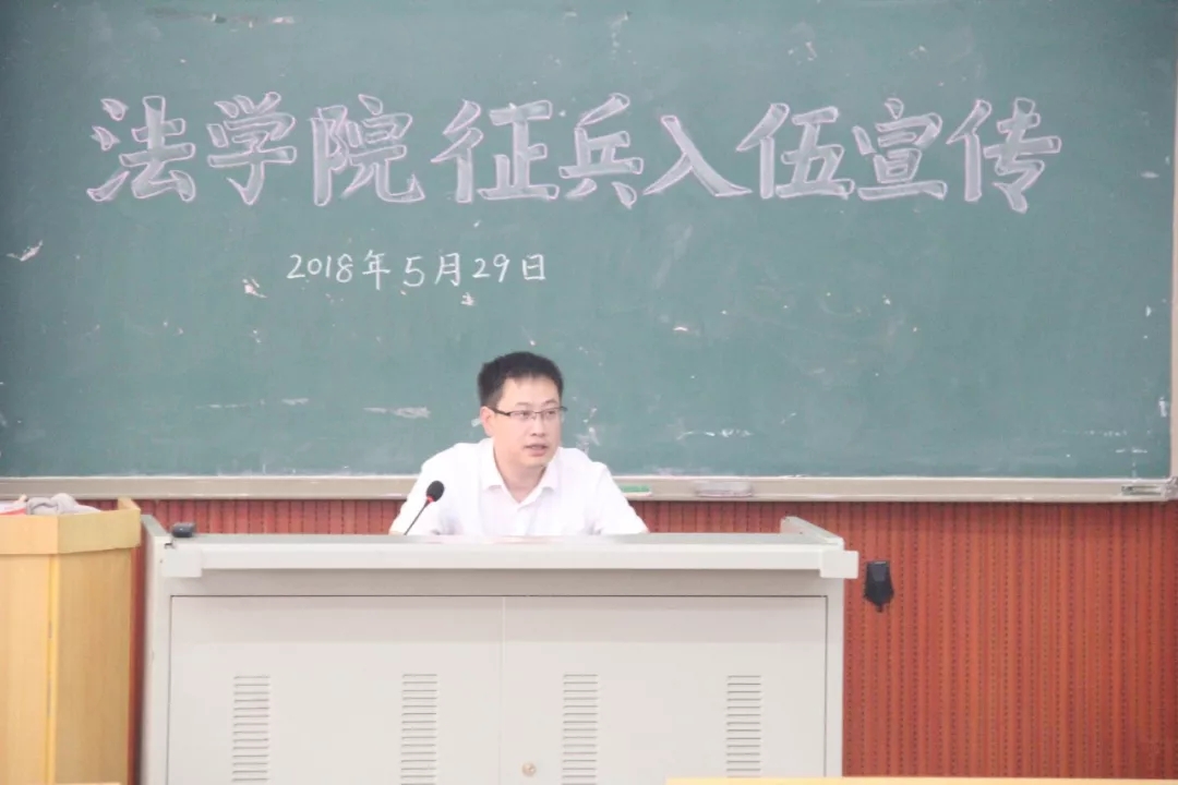 2018年5月29日,法学院在T3D201召开了“法学院征兵入伍宣传会”。本次会议的主讲人是法学院学工办主任刘林浩。