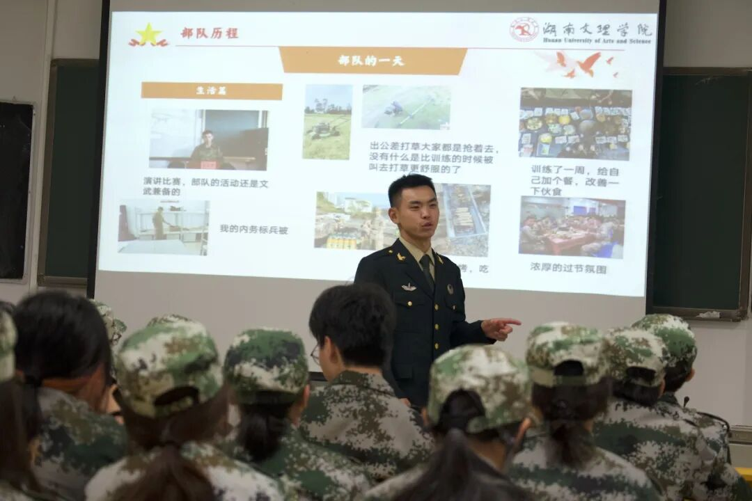 9月19日下午,在湖南文理学院东校区第一教学楼B101教室开展以“青春铸剑 强军有我”为主题的国防教育宣讲会。本次宣讲会旨在强化大学生国防意识,激励青年学子踊跃参军、报效国家。