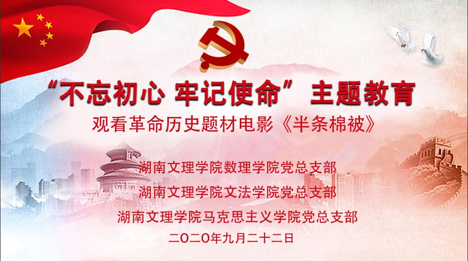 为更好地传承红色基因、发扬新时代长征精神,2020年9月22日下午,文史与法学学院组织党员老师们前往影院观看了革命历史题材电影《半条棉被》。该影片以3名女红军战士与汝城县沙洲村村民徐解秀之间的故事为主线,生动讲述了红军长征途中一段军民鱼水深情的历史,深刻展现了我们党领导的人民军队与人民风雨同舟、血脉相通、生死与共的革命情怀。