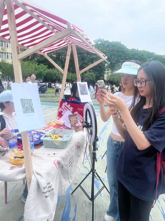 不同于传统授课模式,本次课程以校园为实践基地,学生在教学区、食堂等人流密集区搭建临时直播间,推广文具、文创产品、校园周边等商品。学生分组运营电商店铺,从选品、策划、拍摄到直播销售全程参与,并在户外实地直播,向观众展示商品的生产环境和特色优势。这种沉浸式教学模式不仅锻炼了学生的运营能力、沟通技巧和团队协作能力,也让他们深刻理解了电商在乡村振兴中的实际应用。