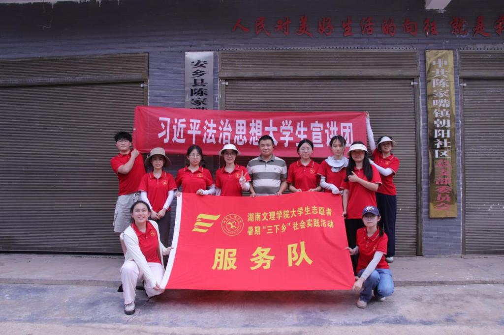 7月10日,湖南文理学院文史与法学学院习近平法治思想大学生宣讲团在我院教师张璇炜与社区主任带领下,走进安乡县陈家嘴镇朝阳社区,开展暑期“三下乡”普法与社会调研活动,助力基层治理,搭建校地连心桥。
