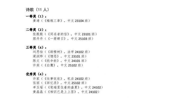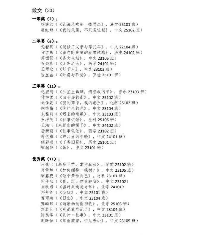 本次比赛聚焦故乡记忆、校园生活、人生思考等多元题材,诗歌赛道作品或凝练隽永、意境悠远,或节奏明快、情感真挚;散文赛道作品则以细腻笔触勾勒生活图景,用真挚情感传递人生感悟。参赛作品不仅展现了学子们扎实的文学素养与丰富的内心世界,更体现了当代青年对传统与现代文化的深刻思考,成为学校美育教育与人文素养培育的生动实践。