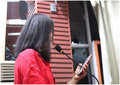 讲堂进行中,教授邀请学院老师龙静一起朗读诗歌。二人以不同的角色,共同演绎出了一个佳作。