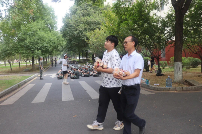 文史与法学学院党总支书记王翀、党总支副书记凌云和副院长李进平组织全体学工办老师、21级班主任以及21级班导,为每一位同学和教官发放了中秋月饼,并送上了节日祝福。