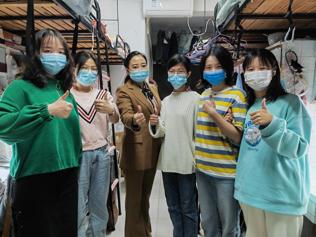 晏昱一行来到学生6舍,先后实地查看了105、106、107、108、113等多间寝室的整体情况,询问了部分大四学生现状及其封校后的学习生活。她亲切地与学生问好、握手,关心封校生活给学生带来的变化,且针对大四学生就业问题、考研复试、考公情况等毕业去向给予了相应建议与诚挚祝福。她指出,在封校期间确实给学生带来诸多不便,希望同学们理解特护时期的特殊管理政策,自觉遵守学校防疫规定,加强运动锻炼,养成健康的身心,与学校齐心协力、共渡难关;同时,因封校引发的心健康问题,希望学生们遇到困难能够主动与老师交流沟通。