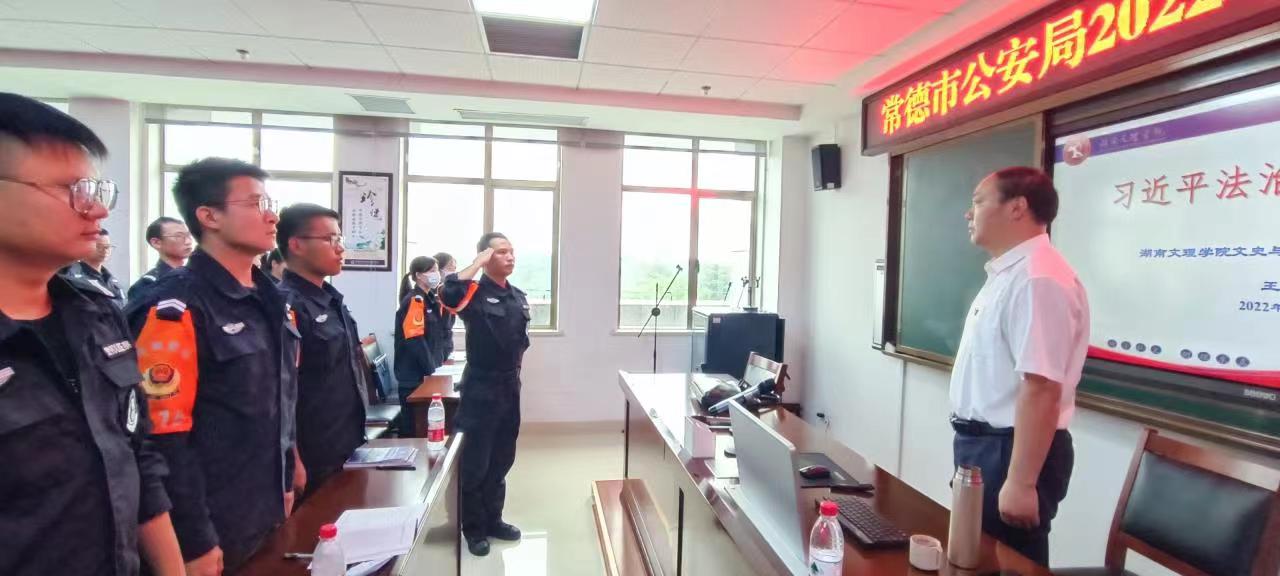 本网讯(通讯员:刘彦妤)2022年6月9日上午,常德市公安局2022年第51期新警培训班在市警官培训中心举行。我院党委书记、湖南文理学院习近平法治思想研究所执行所长王翀受邀作题为《习近平法治思想解读》的专题讲座。