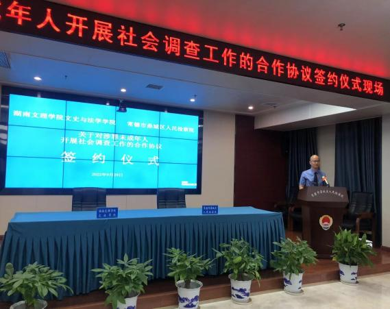为贯彻习近平法治思想,贯彻对涉罪未成年人教育、感化、挽救的方针和教育为主、惩罚为辅的原则,充分保障涉罪未成年人合法权益,积极推进常德市未成年人犯罪处理司法制度改革,规范未成年人刑事案件社会调查工作,2022年9月29日下午,常德市鼎城区人民检察院、湖南文理学院文史与法学学院举行了涉罪未成年人开展社会调查工作的合作协议签约仪式。