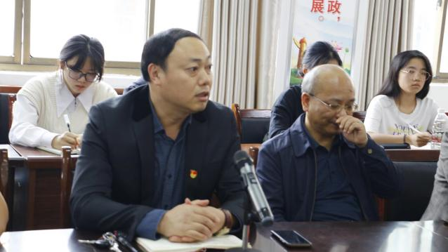 文史与法学学院全体班子成员、办公室主任李云安、新闻系主任肖明清、记者团指导老师余袁媛、熊影及记者团2022-2023届全体成员参加见面会。