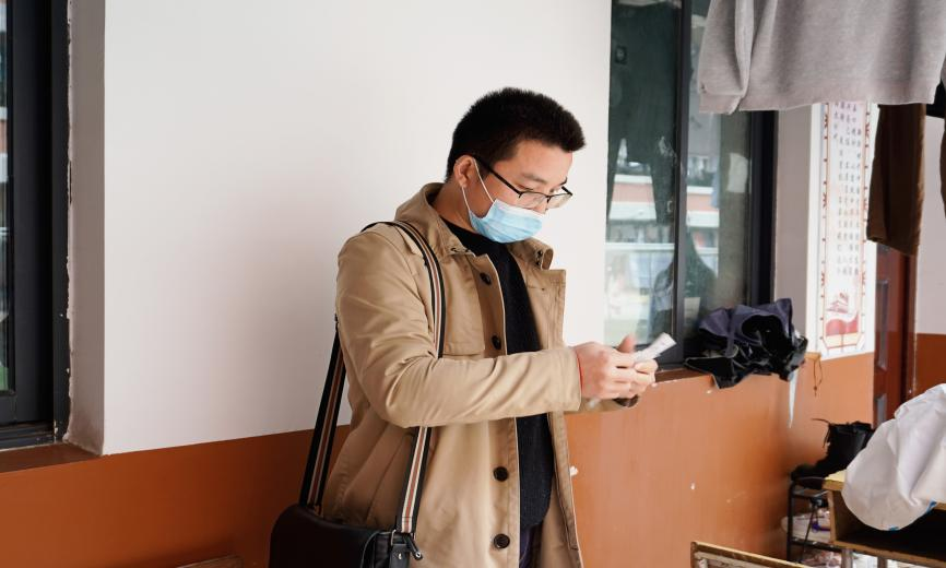 文史与法学学院教师朱彧维持核酸检测现场秩序