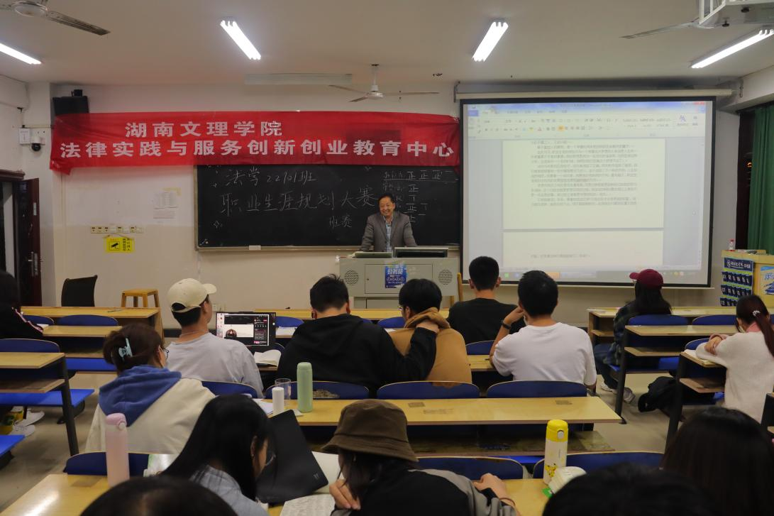 本网讯(摄影曾子凡 记者肖群芳)2023年5月7日晚,法学22101班举行了大学生职业规划技能大赛。法学系教授丁德昌出席活动。