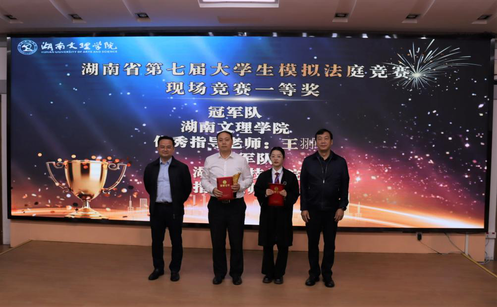 本网讯(通讯员 余袁媛 林江柳)金秋十月,群雄逐鹿。10月21日至22日,由湖南省教育厅主办,我校承办的湖南省第七届大学生模拟法庭竞赛圆满落幕。大赛汇聚了来自省内22所高校的代表队,我校代表队获得现场竞赛团体一等奖冠军、优秀书状奖一等奖、优秀组织奖等,囊括所有奖项,创历史最好成绩。