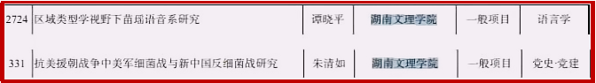 本网讯(记者 曾艳) 9月22日,全国哲学社会科学工作办公室正式公布了2023年国家社会科学基金年度项目和青年项目立项结果,我院再获立项两项。分别为中文系谭晓平教授主持的项目《区域类型学视野下苗瑶语音系研究》和历史系朱清如教授主持的项目《抗美援朝战争中美军细菌战与新中国反细菌战研究》。