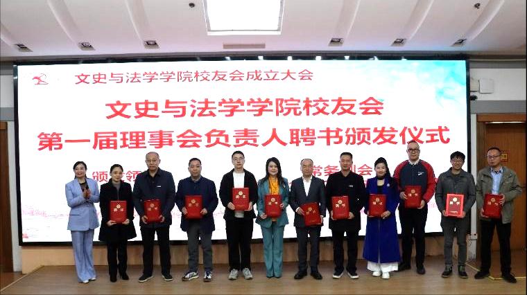 会上,举行了文史与法学学院校友会授牌仪式,客座教师、兼职班主任聘任仪式。