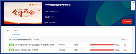 中国干部网络学院2025年全国“两会”精神解读专栏课程,共10门课程。
