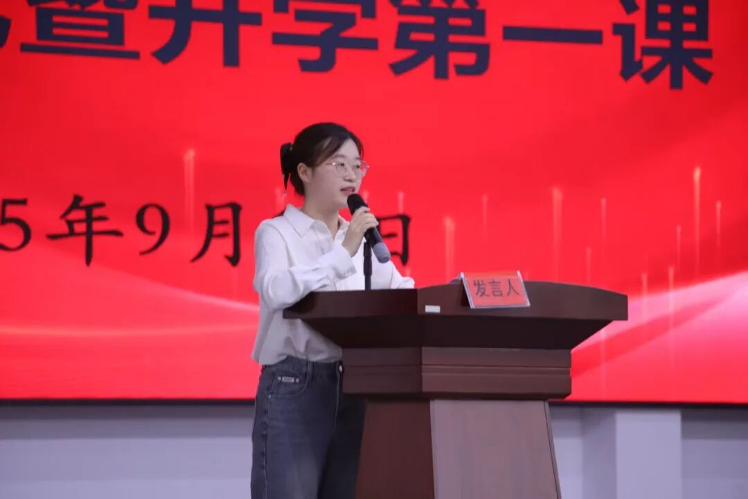教师代表周婷寄语新生,鼓励大家尽快适应大学生活,实现思维方式的转变,注重培养自主学习和独立思考的能力,她强调:“大学教育的核心在于启迪智慧,愿你们勇于挑战、坚持热爱。”研究生新生代表邹黄妮发言,表示将珍惜宝贵的学习机会,深耕学术领域,追求创新突破,在文法学院开启科研探索的新征程。