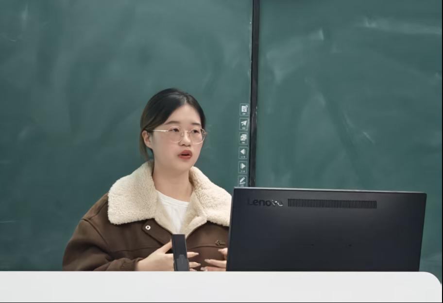 邹黄妮以“共探语文教学的新视界”为题进行汇报。她运用泰勒原理、支架式学习等理论解读了王荣生教授的阅读教学理念,并结合《最后的常春藤叶》课例对课堂教学中的学生从众心理进行了反思。桂强肯定了邹黄妮同学的理论辨析能力,建议各位同学将教学理论与扎实的文本解读功底相结合,在广阔的文学史版图中“按图索骥”。