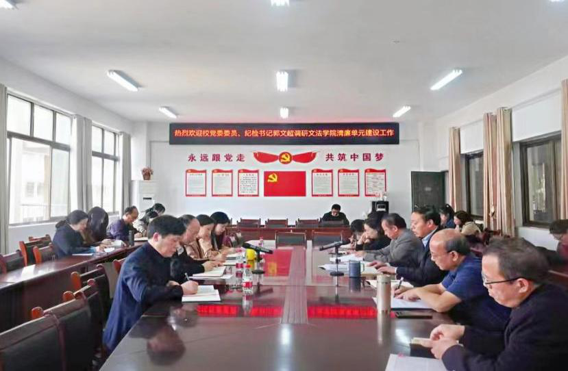 会议现场 湖南文理学院党委委员、纪委书记郭文超听取汇报文史与法学学院党委书记兼院长王翀发言 本网讯(记者:肖群芳 摄影:龙怡冰)10月31日下午,校党委委员...
